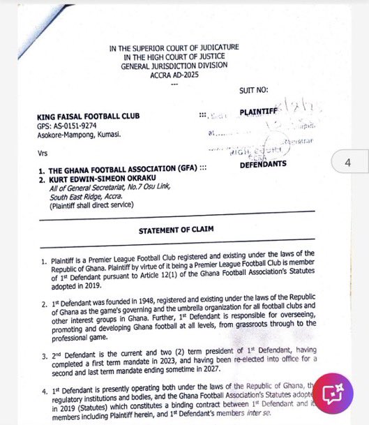 King Faisal Member Seeks Court Injunction to Halt GFA Presidential Term Extension Debate