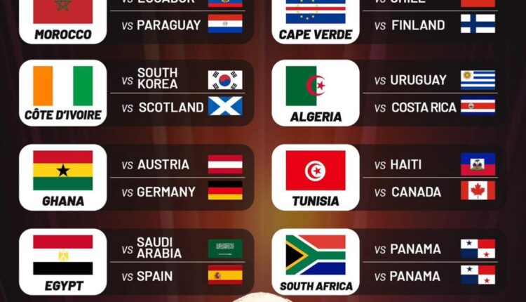 Morocco will face Ecuador and Paraguay, while Côte d’Ivoire takes on South Korea and Scotland. Ghana is set for challenging encounters against Austria and Germany, and Egypt will test themselves against Saudi Arabia and Spain.