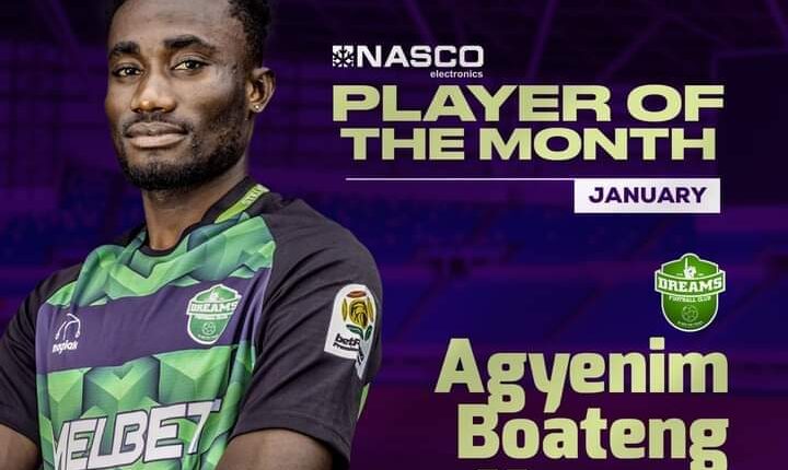 Attacker for Dreams FC, Agyenim Boateng Mensah has been adjudged the best player for the Month of January in the 2022/23 Ghana Premier League season.