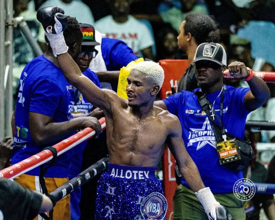 Ghana’s rising boxing star, Theophilus Kpakpo Allotey, delivered a commanding performance to stop Namibia’s Jonas Erastus in the seventh round and secure the WBA super flyweight title.