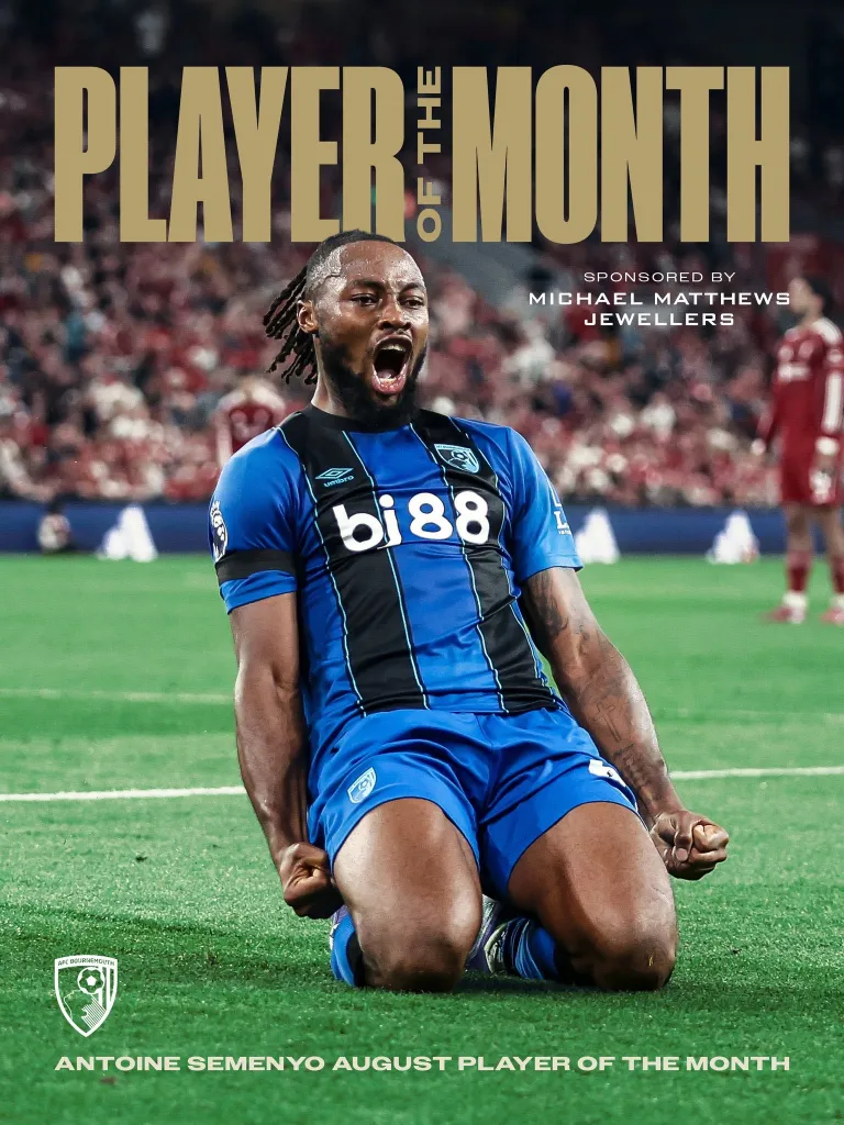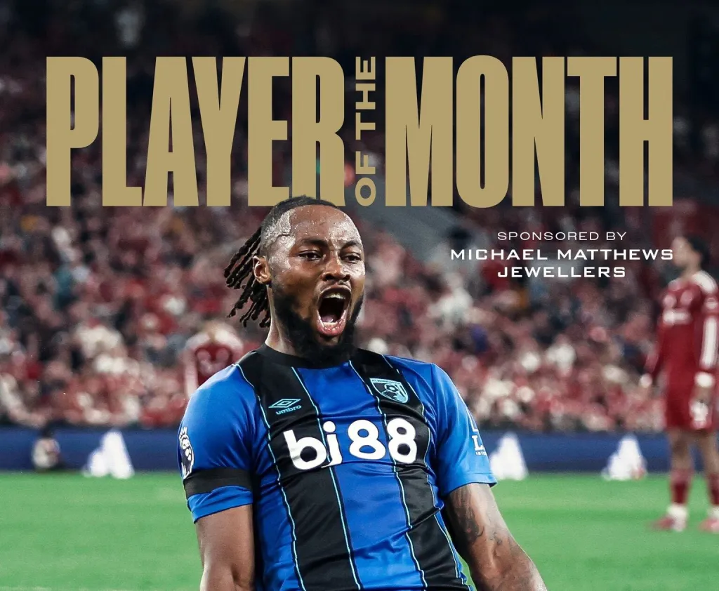 Ghanaian international Antoine Semenyo has been named as AFC Bournemouth’s Player of the Month for August, marking a stellar start to the Premier League season. The Black Stars forward impressed fans and pundits by scoring twice and providing an assist across three matches, earning him the coveted award presented by Michael Matthews Jewellers.