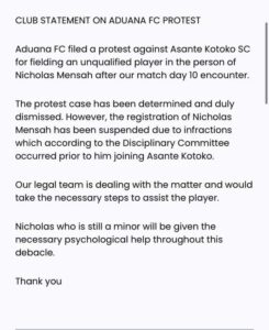 The DC, after its rigourous investigation, did not only dismissed the case but also ruled that Nicholas Mensah’s registration is nullified and cannot feature for Asante Kotoko until further notice.