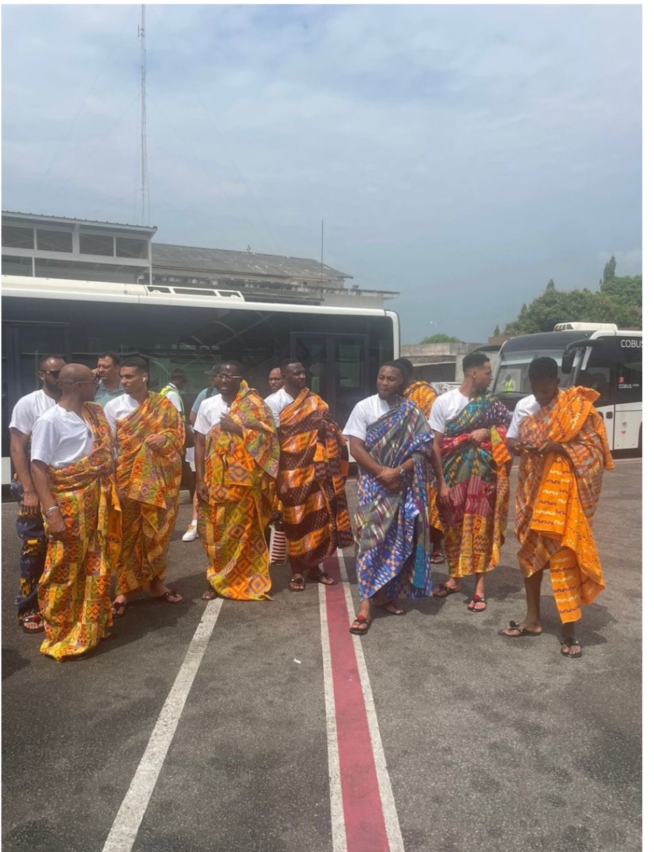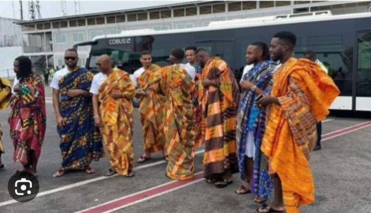 The Black Stars of Ghana turned Hundreds of heads and attention to their arrival in Abidjan dressed in Colorfully made Ghanaian Kente dress.