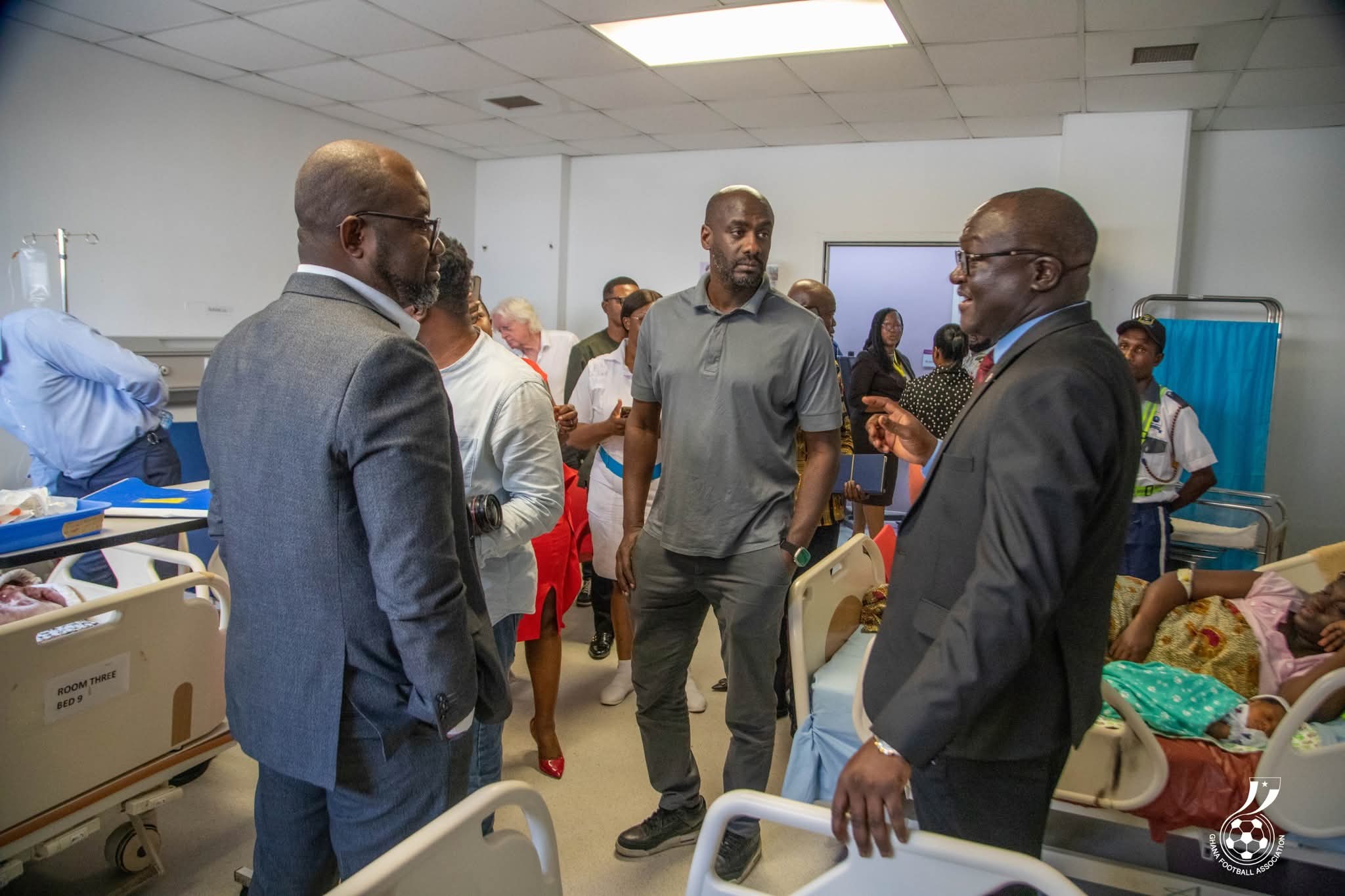 The delegation was led by Black Stars Head Coach Otto Addo and Kurt Edwin Simeon-Okraku, President of the Ghana Football Association. The visit formed part of the team’s corporate social responsibility efforts and provided an opportunity for the technical staff to interact with hospital personnel and new mothers on the ward.