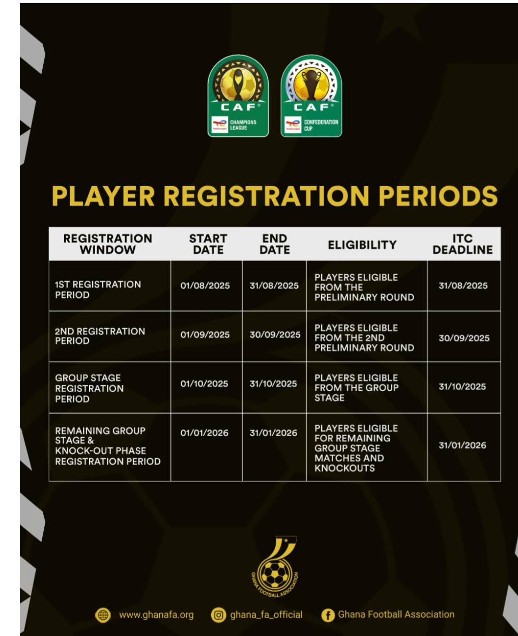 CAF has also detailed four specific windows for player registration to ensure clubs are well-prepared: