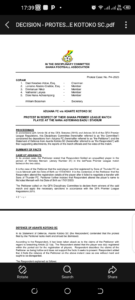 In their response, Asante Kotoko “contended that the protest filed by the Petitioner lacks merit and should be dismissed” and that “it had been taken aback as to the claims of the Petitioner with regard to breaching Artcle 22 1(a).”