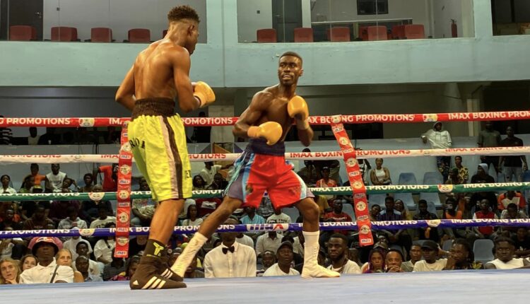Debutant Emmanuel Sackey of Palm Springs was given some boxing lessons by Black Panthers’ Emmanuel Noi Mensah before deciding to quit in round two.