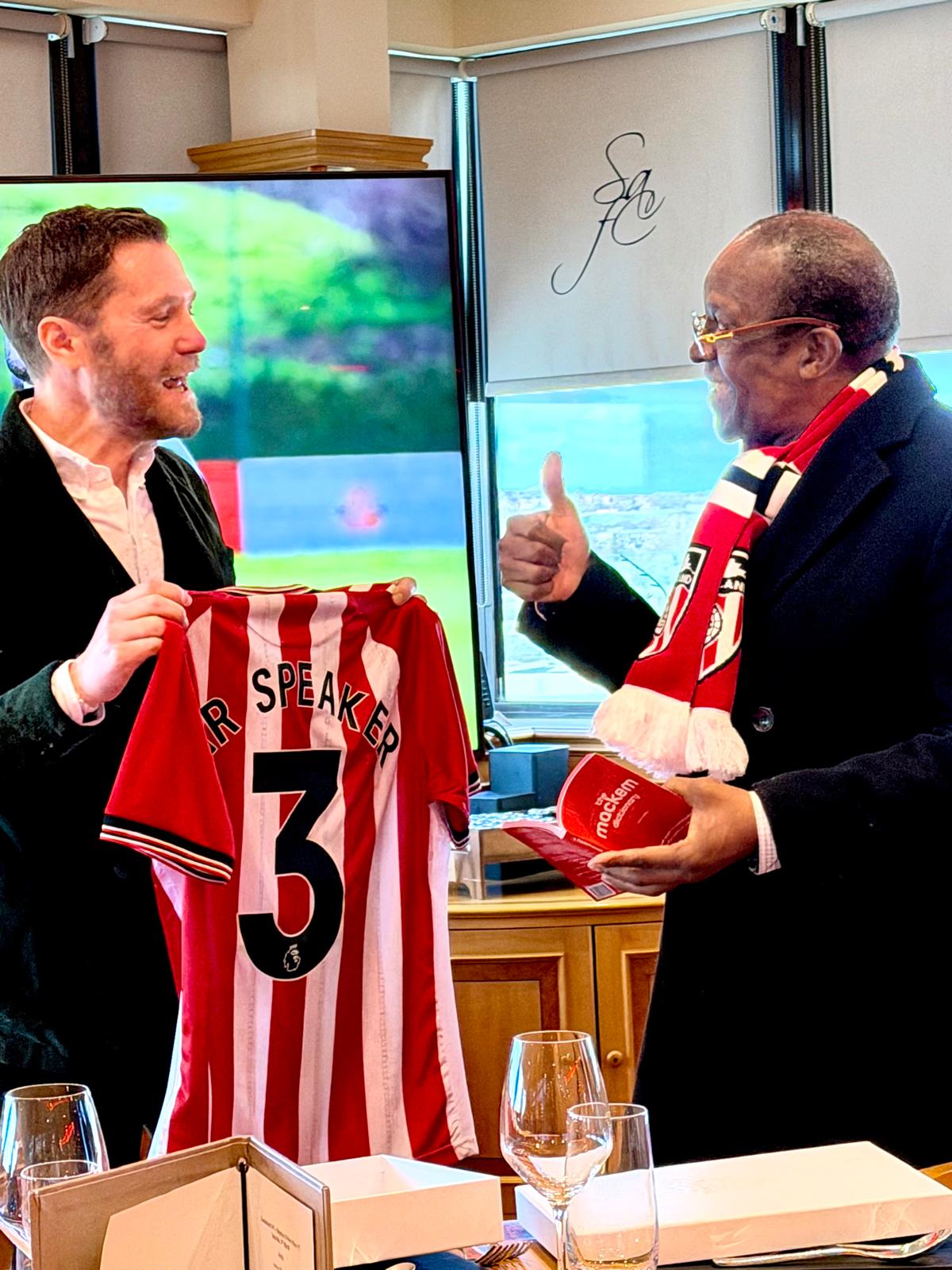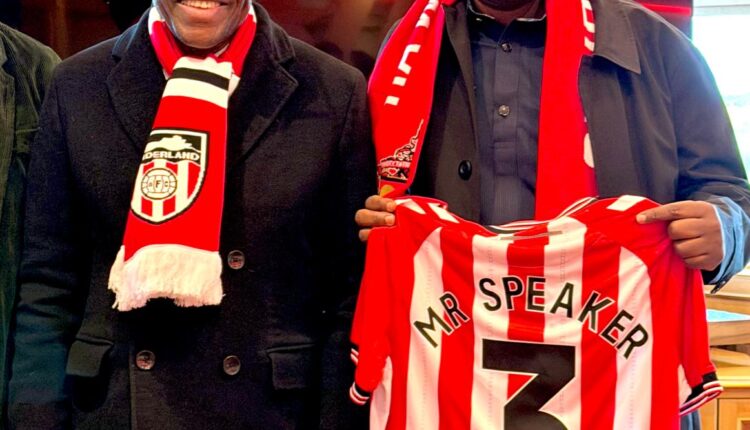The Speaker of Parliament, Alban Bagbin, together with members of the Parliamentary Select Committee on Youth and Sports, visited English club Sunderland A.F.C. over the weekend to deepen ties and explore new opportunities under the Democracy Cup initiative.