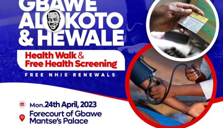 Jerry Ahmed Shaib, the Founder of JAS Foundation in Collaboration with Gbawe Kwatei Family will organize health walk and free screening for Waija-Gbawe constituency on Monday, 24th April, 2023 at 5am.