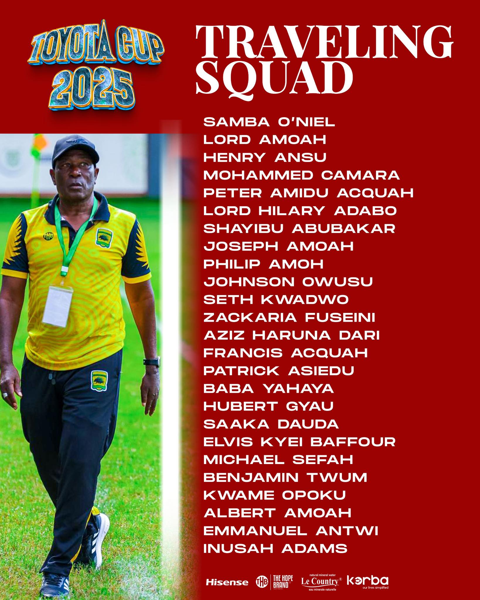 Asante Kotoko head coach, Abdul Karim Zito, has officially announced his squad for the club’s upcoming training tour and tournament in South Africa. The selected players are expected to embark on the pre-season campaign as part of preparations for the forthcoming season.