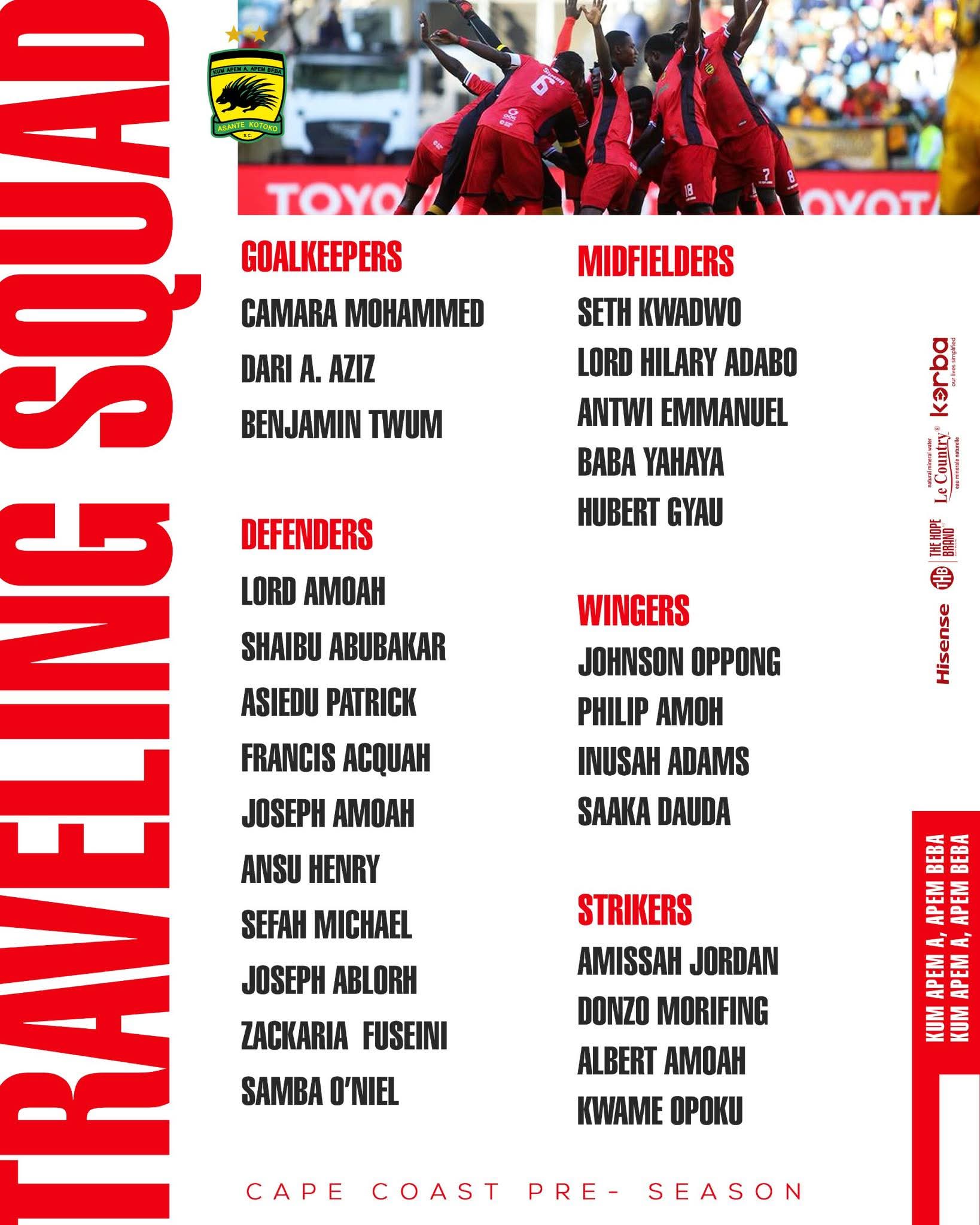 Asante Kotoko have been dealt a major setback ahead of the second phase of their pre-season preparations in Cape Coast, with wingers Peter Amidu Acquah and Elvis Kyei Baffour ruled out for approximately six weeks after sustaining ankle injuries.