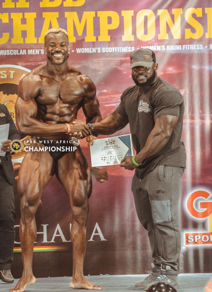 In the Men’s Physique Pro Card category Nton defeated his Ghanaian counterparts Martins Ampadu and Benjamin Bleajumah to win the first place.