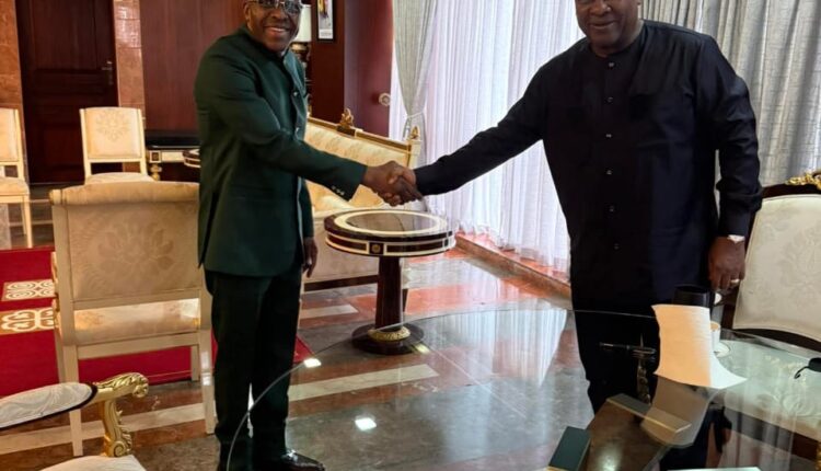 President John Dramani Mahama on Tuesday received the Democracy Cup trophy from the Speaker of Parliament, Mr Alban Sumana Kingsford Bagbin, at the Jubilee House in Accra.