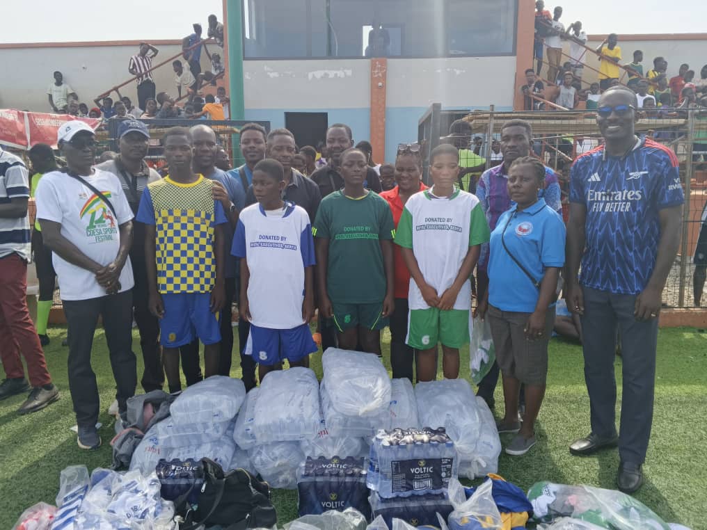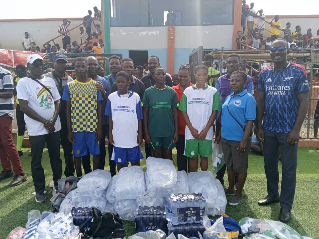 Senya Bereku (C/R), Nov. 4 – The Royal Executives Club, a group of young professionals from Senya Bereku, has presented four sets of jerseys, 20 sachets of water and five cartons of bottled water to four basic schools participating in the ongoing inter-school games in the area.