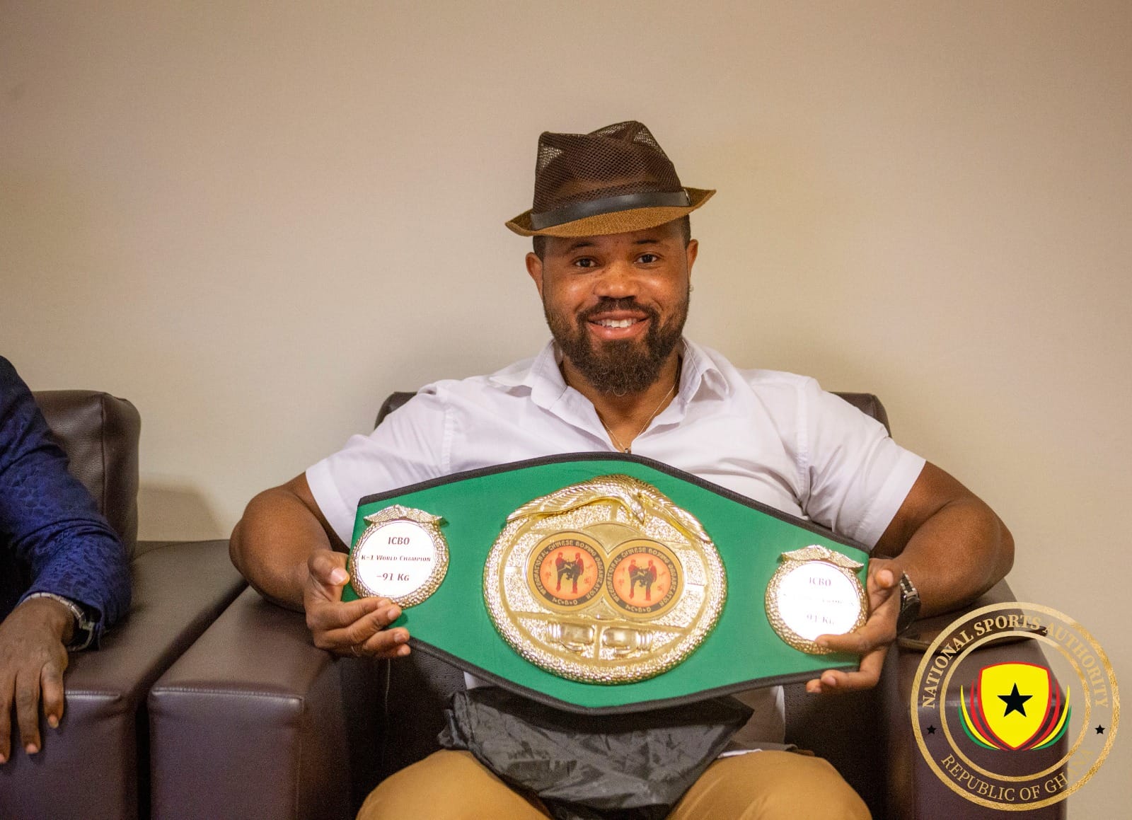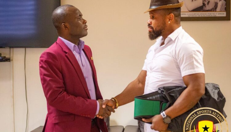 International Chinese Boxing Organization (ICBO) K1 90+kg title holder, Ghana’s Steavano Kojo Tuekpe today paid a courtesy call on Professor Peter Twumasi, Director General of the National Sports Authority (NSA) at his office at the Accra Sports Stadium.